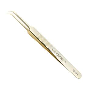 Pinça Nagaraku N-07 possui um acabamento surpreendente e totalmente único, foi projetada pensando em quem necessita de agilidade na montagem de fans, mas que também pode ser utilizada na técnica de fio a fio por possuir uma ponta fina e de alta preisão. Seu material foi desenvolvido pensando em seu bem estar, por ter acabamento matte, o qual inibe Os reflexos durante os procediemntos de extenção de cílios.