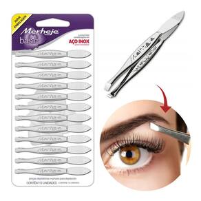 Pinça Para Sobrancelha Merheje Cartela C/ 12 Unidades Aço Inox
