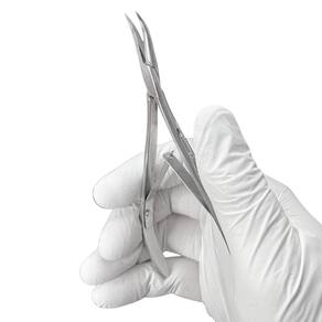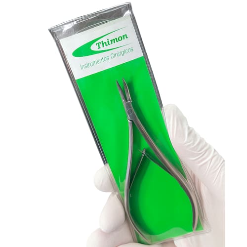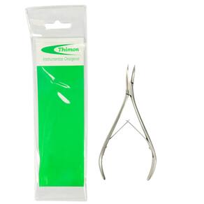 Pinça com mola Thimon, modelo de ponta curva e fina, indicada para trabalhos que exigem firmeza e precisão no manuseio.