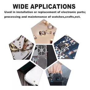 Feita de aço inoxidável, essa pinça é extremamente resistente e durável, garantindo um uso prolongado. Seu bico curvo é perfeito para enfeitar decorações ou pegar pequenas pedras, miçangas, pedras e outros objetos pequenos. Além disso, sua versatilidade permite que seja utilizada por fabricantes, joalheiros, eletrônicos, relojoeiros e trabalhos artesanais.