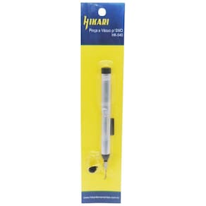 Fabricada em material metálico de alta qualidade, essa pinça a vácuo da Hikari é antiestática, garantindo a proteção dos componentes eletrônicos durante o manuseio. Além disso, ela acompanha 3 ventosas de tamanhos diferentes, que facilitam a remoção de componentes com pesos variados: uma pequena para componentes de até 3 gramas, uma média para componentes de até 18 gramas e uma grande para componentes de até 40 gramas.