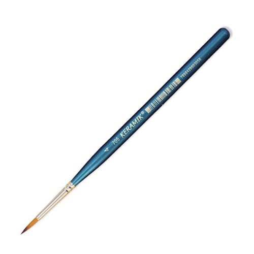 Pincel Keramik redondo 705 linha Premium, especialmente projetada para proporcionar os melhores resultados em diversas técnicas artísticas. Com pelo sintético bicolor e cabo curto cilíndrico em madeira, são excelentes pincéis para trabalhos em acrílico, aquarela e artesanatos em geral. O formato cilíndrico do cabo faz com que o manuseio se torne mais agradável e os pelos sintéticos especialmente flexíveis produzem traços fluídos com precisão. O pincel Keramik redondo 705 pode ser utilizado para traçar linhas finas ou espessas de acordo com a pressão aplicada, além de traços curvados.