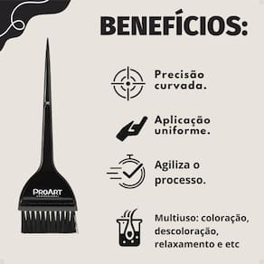 O Pincel de Tintura Proart Curvo Pa300b da PROART é a ferramenta essencial para profissionais exigentes e especialistas em coloração e tratamento capilar. Desenvolvido para proporcionar uma aplicação precisa e confortável, este pincel curvo otimiza o processo de coloração, relaxamento, descoloração e tratamentos, garantindo resultados impecáveis. Sua ergonomia e design são pensados para facilitar o manuseio e a distribuição uniforme dos produtos, elevando a qualidade do seu trabalho. Ideal para quem busca precisão e resultados de salão no dia a dia.