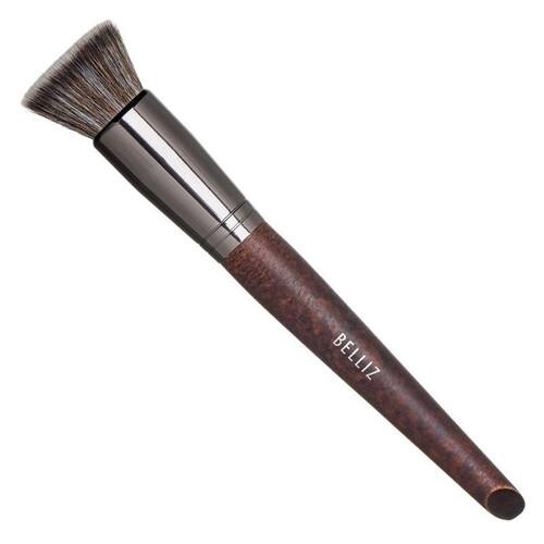 O Pincel Kabuki Belliz Wood possui formato Kabuki com corte reto, perfeito para aplicar base densa ou líquida, corretivos cremosos e pó compacto ou solto.