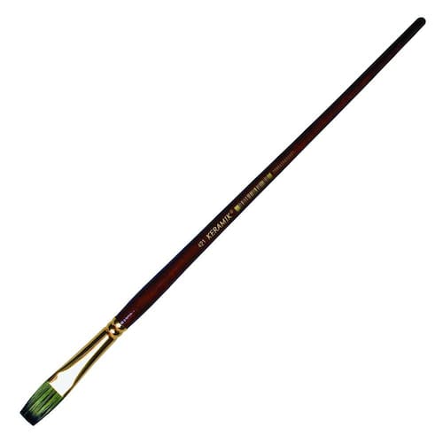 Pincel para tela Keramik 421 é um pincel de formato chato com pelo sintético e cabo de madeira. O pincel Keramik 421 é um pincel com finíssimo acabamento e utilizado para belas artes, pintura a óleo e pintura acrílica.