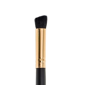 O Pincel de maquiagem Maria Margarida O33 apresenta uma cabeça de escova levemente chanfrada excelente para aplicar a cor como um marcador para o osso da testa. A borda do pincel inclinada plana difunde a sombra de destaque na sombra da tampa, criando um efeito bem combinado.