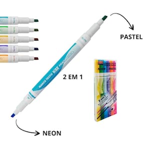 Indicações de uso: Estudos: destaque informações importantes em livros e anotações sem comprometer a legibilidade. Trabalho: organize documentos e agendas com cores diferenciadas, facilitando a visualização rápida. Artes e diy: use as cores pastel para detalhes delicados e as neon para criar contrastes marcantes. Bullet journal e planejamento: personalize seu planner ou bullet journal, combinando tons suaves e intensos.