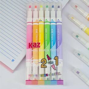 Pincel marca texto 2 em 1 neon + pastel 6 unidades kaz Pincel marca texto 2 em 1 da kaz é perfeito para quem precisa de versatilidade e precisão ao marcar textos. O kit vem com 06 unidades, cada uma com ponta dupla, oferecendo 12 cores vibrantes divididas entre neon e pastel, ideais para diferentes finalidades.
