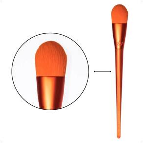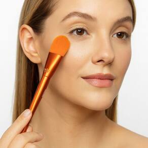 Utilize o pincel para aplicar sua base líquida ou pó compacto diretamente sobre a pele, espalhando o produto com movimentos suaves e uniformes para um acabamento impecável e profissional.