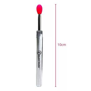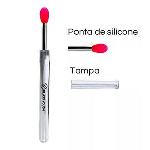 Pincel com ponta de silicone, ferrule alumínio e cabo polipropileno.