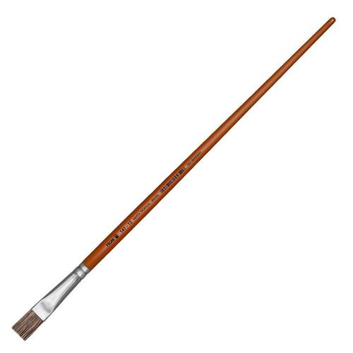 Pincel de Pelo de Marta Tropical 141 para pintura, cor castanho escuro, pelo de Marta Tropical, formato chato, virola de alumínio e cabo longo. Ideal para técnicas à óleo, acrílico, guache, cerâmica, gesso, madeira, metal, vidro e artesanato em geral.