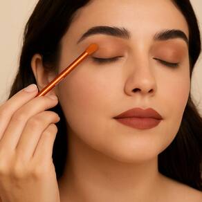 Com movimentos suaves e circulares, esfume a sombra no côncavo ou na linha dos cílios para criar transições perfeitas, suavizando as bordas.