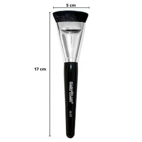 Especialmente desenvolvido para aplicar e fazer marcações de produtos líquidos e cremosos para contorno. Macio, de cerdas sintéticas e com formato ideal para a técnica de contorno funciona perfeitamente para qualquer formato de rosto .