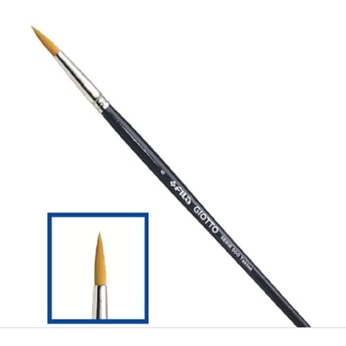 Descrição do produto • N° 6. • Tipo: redondo. • Os pincéis de ponta redonda são perfeitos para pintura decorativa e trabalhos com tintas à base de água, como aquarela, guache e tinta acrílica. • Composição: cerdas em fibra sintética e cabo revestido em azul escuro com virola de metal.
