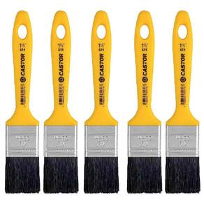 Pincel Trincha 1.1/2 Pol Amarelo Cerdas Pretas Kit 5 Unidades CASTOR