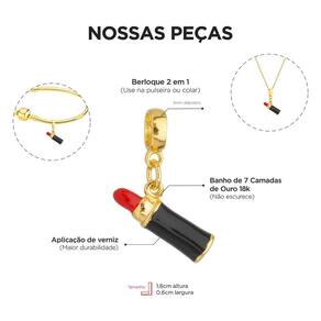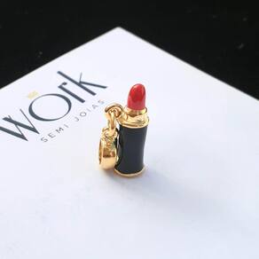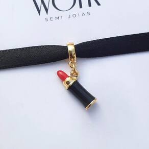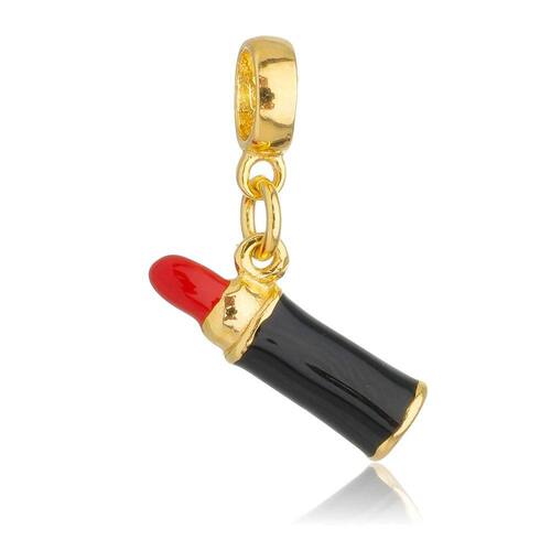 MODELO: Berloque de batom dourado banhado com 7 milésimos de ouro 18k com strass e resina.