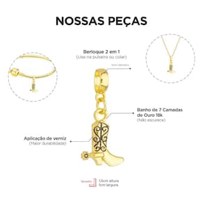 MODELO: Berloque de bota de cowboy country banhada com 7 milésimos de ouro 18k.
