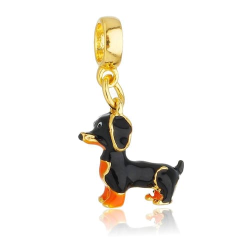 MODELO: Berloque do cachorro Salsicha Dachshund banhado com 7 milésimos de ouro 18k.