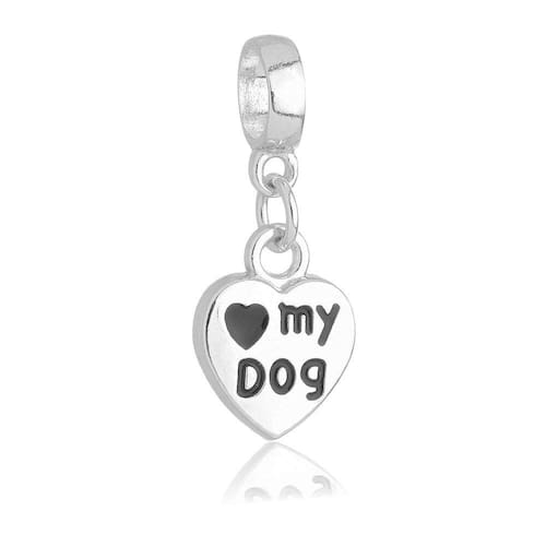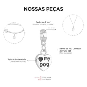 MODELO: Berloque de coração cachorro love my dog banhado com 100 milésimos de prata 925.