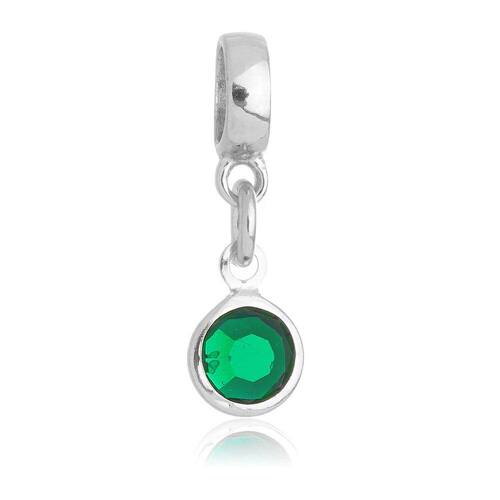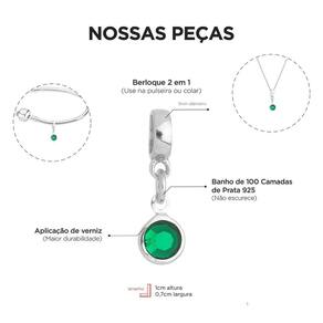 MODELO: Berloque de cristal strass verde banhado com 100 milésimos de prata 925.