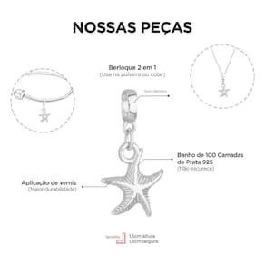 MODELO: Berloque de estrela do mar banhado com 100 milésimos de prata 925.