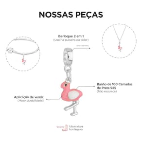 MODELO: Berloque de flamingo banhado com 100 milésimos de prata 925.