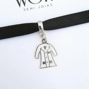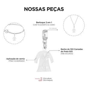 MODELO: Berloque Jaleco de Enfermagem / Medicina banhado com 100 milésimos de prata 925.