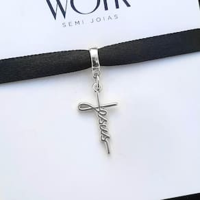 MODELO: Berloque Jesus Cristo Cruz banhado com 100 milésimos de prata 925.