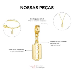 MODELO: Berloque de lâmina de barbear banhado com 7 milésimos de ouro 18k.