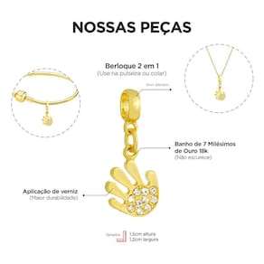 MODELO: Berloque de mão manicure banhado com 7 milésimos de ouro 18k.