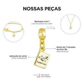 MODELO: Berloque de Passaporte Viagem banhado com 7 milésimos de ouro 18k.