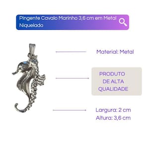 Pingente Cavalo Marinho 3,6 cm em Metal Niquelado Pingente Cavalo Marinho 3,6 cm em Metal Niquelado O Pingente Cavalo Marinho 3,6 cm em Metalda Bialluz é de alta qualidade feitos de forma artesanal com muito carinho. É perfeito para qualquer pessoa. Cheia de boas energias e carregada de fé nosso pingente emanará muita paz em sua vida Enviamos a seu produto em até 24 horas após a confirmação de pagamento Tamanho: 3,6Material: Zamac liga metálica Cor: Metal Niquelado Caso tenha alguma dúvida nos mande mensagem que respondemos rapidinho para te ajudar da melhor forma possível Marca: Meta Atacado