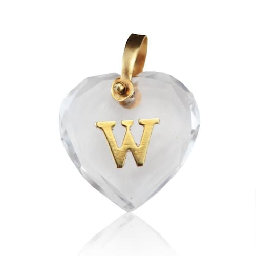 Pingente Cristal Coração Com Letra W Em Ouro 18K