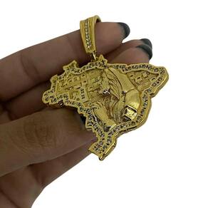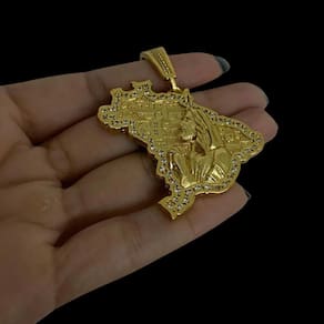 Pingente Cristo Brasil Cravejado m - Banhado a Ouro 18k