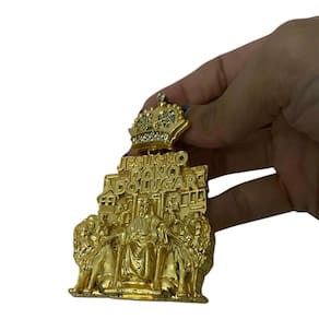 Material: ligas metálicas de alta qualidade, especialmente tratadas para fixação e absorção do ouro, com acabamento em verniz protetor.