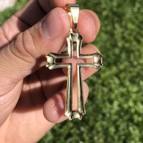 Pingente Cruz Paixão de Cristo Banhado a Ouro 18K O uso de joias tem crescido cada vez mais no mercado masculino, sendo o pingente de cruz vazada banhada a ouro 18k um item muito procurado, devido sua beleza, significado e elegância. O pingente de Cruz Paixão de Cristo deve acompanhar uma corrente, e vai do seu gosto pessoal qual corrente colocar, porém, o ideal em peças desse tipo é usar uma corrente mais delicada, fina, para que seja notado o pingente.