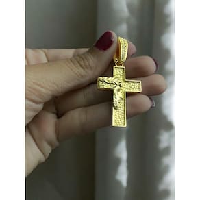 Pingente Cruz Rosto Jesus Cristo Cravejada P Banhado Ouro Detalhes do Produto: Material: ligas metálicas de alta qualidade, especialmente tratadas para fixação e absorção do ouro, com acabamento em verniz protetor. Aparência: visual idêntico ao ouro maciço. Produção: artesanal, com atenção meticulosa aos detalhes. Banho: 10 camadas espessas de ouro 18k, finalizadas com verniz antialérgico . Elos: soldados varia conforme o modelo . Pedras: zircônias brilhantes cravejadas quando aplicável . Tamanhos Disponíveis: Cordões Masculinos: 70cm padrão e 60cm sob consulta/Pedido Via Chat . Cordões Femininos: 50cm padrão e 45cm sob consulta/Pedido Via Chat . Pulseiras: 21cm padrão ; tamanhos de 18cm a 23cm sob consulta/Pedido Via Chat. Pingentes: conforme imagens; consulte para mais detalhes via chat. Espessuras Recomendadas para Cordões / Pingentes: P: 1mm a 4mm M: 4mm a 8mm G: 6mm a 13mm Gg: 12mm a 18mm Incluso na Compra: Saquinho de organza para armazenamento seguro. Caixa elegante, perfeita para presente. Cupom de desconto para a próxima compra. Flyer com outros produtos da coleção. Carta de agradecimento personalizada. Adesivo da marca ToJoia18k. Informações Adicionais: : 6 meses termos acompanham o produto . Devolução: 7 dias para devolução sem questionamentos. Envio: despacho em até 24 horas úteis após confirmação do pagamento. Cuidados com a Peça: Evite contato com produtos químicos; aguarde o perfume secar antes de usar. Evite contato com shampoo, condicionadores e suor excessivo. Armazene em local seco, preferencialmente no saquinho de organza fornecido. Uso no mar e piscina é permitido; lave com água corrente e sabão neutro após. Por que Escolher a ToJoia18k Semi-joias luxuosas que combinam estilo, qualidade e sofisticação. Banho espesso de ouro 18k, garantindo brilho duradouro e acabamento impecável. Design exclusivo e produção artesanal, perfeitos para qualquer ocasião. Materiais premium que asseguram durabilidade. Ao escolher uma semi-joia ToJoia18k, você investe em qualidade, elegância e uma experiência única. Aguardamos sua compra Observação: pode ocorrer variação no fecho raramente . Imagens reais, sem edição. Qualquer dúvida, estamos à disposição para esclarecimentos. Marca: Tojoia18K