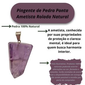 Este pingente único é feito com uma pedra de ametista ponta rolada natural, trazendo não apenas beleza, mas também energia e equilíbrio. A ametista, conhecida por suas propriedades de proteção e clareza mental, é ideal para quem busca harmonia interior. Sua forma pontiaguda e o acabamento rolado conferem um visual sofisticado e moderno, perfeito para ser utilizado em diferentes ocasiões. Seja para uso pessoal ou para presentear alguém especial, este pingente é uma escolha maravilhosa, com uma combinação de estilo e espiritualidade.