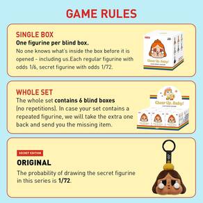 POP MART Crybaby Cheer UP, Baby! Série Caixa cega com pingente de pelúcia, 6 peças de bonecos cegos de bebê chorão, bonecos de ação de design aleatório, brinquedos colecionáveis, decorações de casa, - POP MART CRYBABY CHEER UP, BABY! SÉRIE - Caixa cega com pingente de pelúcia: A caixa cega contém uma figura aleatória de uma série específica. Cada caixa persiana contém apenas um boneco. Ninguém, incluindo nós, sabe o que está dentro. Esta coleção contém 6 figuras de caixa-surpresa, uma delas pode ser a edição secreta. - Design aleatório: as caixas cegas são totalmente aleatórias e não podemos aceitar solicitações de itens específicos. As chances de obter a edição secreta geralmente são de 1/72. Ao comprar o conjunto completo, não haverá figuras duplicadas. - Escolha de presente ideal: Estes bonecos são o presente perfeito para qualquer ocasião, seja Dia das Crianças, Natal, Halloween, Ação de Graças ou Ano Novo. Uma obra de arte que expressa sentimentos profundos e emoções complicadas, também é um presente maravilhoso de decoração de casa para sua família ou amigos. - Materiais e segurança: com 11 cm de altura, cada boneco é feito de materiais premium, incluindo 100% fibra de poliéster e papel. Finalizados com tinta não tóxica e inodora, nossos brinquedos atendem a rigorosos padrões de segurança para garantir a segurança dos clientes. - Atendimento ao cliente: se você receber um item danificado ou encontrar problemas de qualidade, consulte as informações de contato na página de detalhes do produto ou escaneie o código QR na página inicial da loja na seção "Ajuda". Estamos comprometidos em garantir uma experiência satisfatória ao cliente.