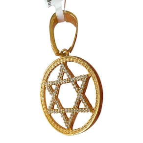 Pingente Estrela De Davi - Banhado a ouro 18k Detalhes do Produto: Material: ligas metálicas de alta qualidade, especialmente tratadas para fixação e absorção do ouro, com acabamento em verniz protetor. Aparência: visual idêntico ao ouro maciço. Produção: artesanal, com atenção meticulosa aos detalhes. Banho: 10 camadas espessas de ouro 18k, finalizadas com verniz antialérgico . Elos: soldados varia conforme o modelo . Pedras: zircônias brilhantes cravejadas quando aplicável . Tamanhos Disponíveis: Pingentes: conforme imagens; consulte para mais detalhes via chat. Incluso na Compra: Saquinho de organza para armazenamento seguro. Caixa elegante, perfeita para presente. Cupom de desconto para a próxima compra. Flyer com outros produtos da coleção. Carta de agradecimento personalizada. Adesivo da marca ToJoia18k. Informações Adicionais: : 6 meses termos acompanham o produto . Devolução: 7 dias para devolução sem questionamentos. Envio: despacho em até 24 horas úteis após confirmação do pagamento. Cuidados com a Peça: Evite contato com produtos químicos; aguarde o perfume secar antes de usar. Evite contato com shampoo, condicionadores e suor excessivo. Armazene em local seco, preferencialmente no saquinho de organza fornecido. Uso no mar e piscina é permitido; lave com água corrente e sabão neutro após. Por que Escolher a ToJoia18k Semi-joias luxuosas que combinam estilo, qualidade e sofisticação. Banho espesso de ouro 18k, garantindo brilho duradouro e acabamento impecável. Design exclusivo e produção artesanal, perfeitos para qualquer ocasião. Materiais premium que asseguram durabilidade. Ao escolher uma semi-joia ToJoia18k, você investe em qualidade, elegância e uma experiência única. Aguardamos sua compra Qualquer dúvida, estamos à disposição para esclarecimentos.
