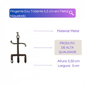 O Pingente Exu Tridente 5,5 cm Níquel da Bialluz é de alta qualidade feitos de forma artesanal com muito carinho. É perfeito para qualquer pessoa. Cheia de boas energias e carregada de fé nosso pingente emanará muita paz em sua vida!