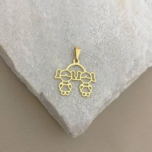 Pingente Filhos Vazado Duplo Banhado a Ouro
