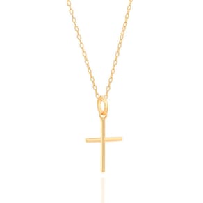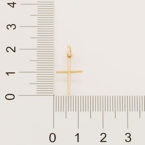 Pingente formato cruz lisa, med. 1,7 x 1,1 cm