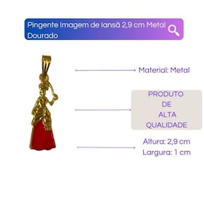 Pingente Imagem de Iansã 2,9 cm Metal Dourado Pingente Imagem de Iansã 2,9 cm Metal Dourado O Pingente Imagem de Iansã 2,9 cm Metal Dourado da Bialluz é de alta qualidade feitos de forma artesanal com muito carinho. É perfeito para qualquer pessoa. Cheia de boas energias e carregada de fé nosso pingente emanará muita paz em sua vida Enviamos a seu produto em até 24 horas após a confirmação de pagamento Tamanho: 2,9Material: Zamac liga metálica Cor: Metal Dourado Caso tenha alguma dúvida nos mande mensagem que respondemos rapidinho para te ajudar da melhor forma possível Marca: Meta Atacado