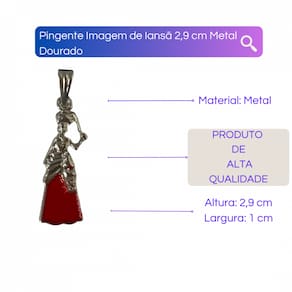 O Pingente Imagem de Iansã 2,9 cm Metal Niquelado da Bialluz é de alta qualidade feitos de forma artesanal com muito carinho. É perfeito para qualquer pessoa. Cheia de boas energias e carregada de fé nosso pingente emanará muita paz em sua vida!