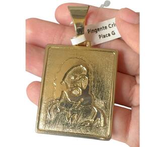 Pingente Jesus Placa - Banhado a ouro 18k Detalhes do Produto: Material: ligas metálicas de alta qualidade, especialmente tratadas para fixação e absorção do ouro, com acabamento em verniz protetor. Aparência: visual idêntico ao ouro maciço. Produção: artesanal, com atenção meticulosa aos detalhes. Banho: 10 camadas espessas de ouro 18k, finalizadas com verniz antialérgico . Elos: soldados varia conforme o modelo . Pedras: zircônias brilhantes cravejadas quando aplicável . Tamanhos Disponíveis: Pingentes: conforme imagens; consulte para mais detalhes via chat. Incluso na Compra: Saquinho de organza para armazenamento seguro. Caixa elegante, perfeita para presente. Cupom de desconto para a próxima compra. Flyer com outros produtos da coleção. Carta de agradecimento personalizada. Adesivo da marca ToJoia18k. Informações Adicionais: : 6 meses termos acompanham o produto . Devolução: 7 dias para devolução sem questionamentos. Envio: despacho em até 24 horas úteis após confirmação do pagamento. Cuidados com a Peça: Evite contato com produtos químicos; aguarde o perfume secar antes de usar. Evite contato com shampoo, condicionadores e suor excessivo. Armazene em local seco, preferencialmente no saquinho de organza fornecido. Uso no mar e piscina é permitido; lave com água corrente e sabão neutro após. Por que Escolher a ToJoia18k Semi-joias luxuosas que combinam estilo, qualidade e sofisticação. Banho espesso de ouro 18k, garantindo brilho duradouro e acabamento impecável. Design exclusivo e produção artesanal, perfeitos para qualquer ocasião. Materiais premium que asseguram durabilidade. Ao escolher uma semi-joia ToJoia18k, você investe em qualidade, elegância e uma experiência única. Aguardamos sua compra Qualquer dúvida, estamos à disposição para esclarecimentos. Marca: Não Informado