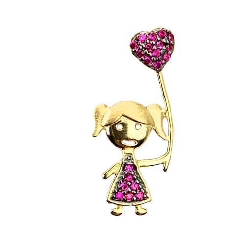 O pingente Menina com Balão em Ouro 18k é um acessório para todas as ocasiões sendo excelente para presentear em todas as datas especiais. Pelo se tamanho 2,5x 1,3 cm sua forma mais comum de uso, é a corrente com pingente, porém, a elegância desse pingente com 20 zircônias Rubi pode ser estendida ao ser anexada a uma pulseira de ouro.