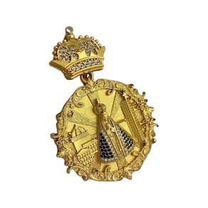 Pingente Nossa Senhora Detalhado Cravejado Banhado A Ouro