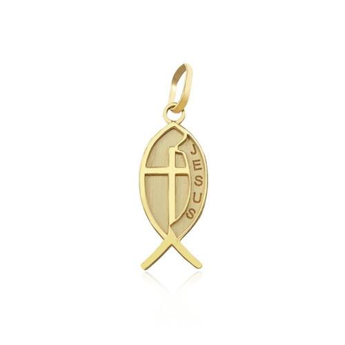 Este elegante Pingente Peixe Cruz Jesus combina simbolismo e sofisticação. Com 2,3 cm de tamanho, ele apresenta um design delicado que une a imagem do peixe, símbolo do cristianismo, e a cruz, representando a fé em Jesus.