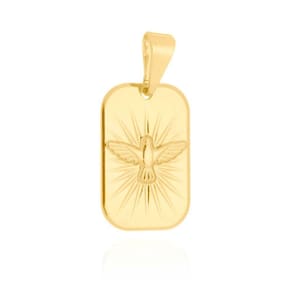 Pingente placa espirito santo - 2,0 x 1,3 cm - banhado a ouro 18k Pi255nossa empresa